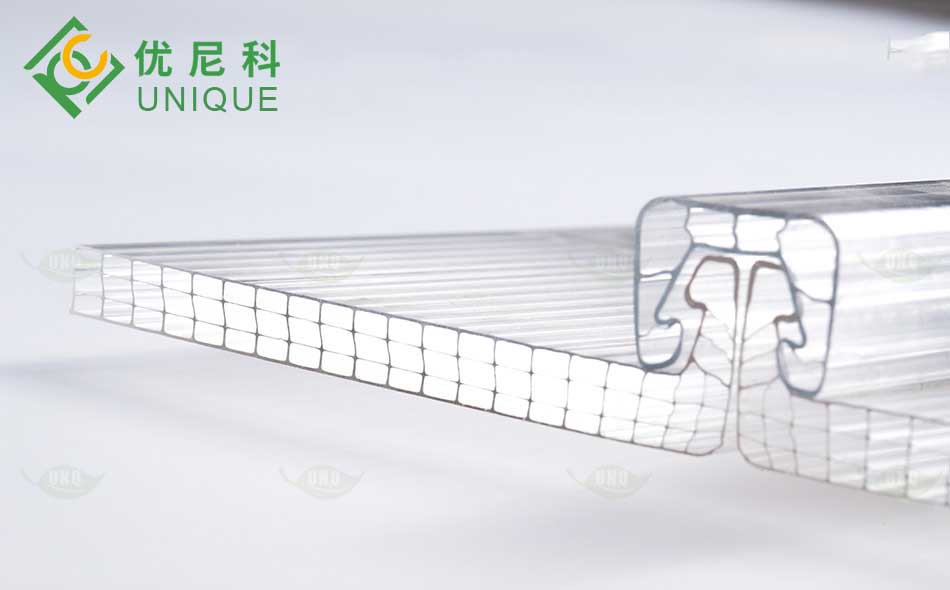 透光不透視。“陽光板”繼承了聚碳酸酯的髙度透明性,透光率最高可達82%,接近平板玻璃的效果。獨特的復(fù)合結(jié)構(gòu)卻使它成為了一種半透明材料,形成了“透光不透視”的特點。在引入光線的同時,有效地避免了外界的視線干擾。